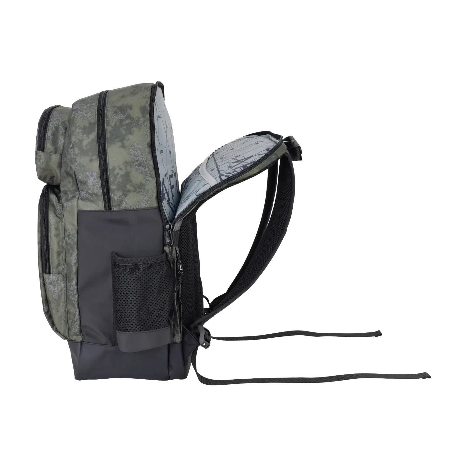 A spacious large center compartment handles bulkier gear like tackle trays, clothes, or travel essentials, while two front accessory pockets and two side pockets keep small items within easy reach. For travel and everyday use, a padded laptop sleeve built into the back panel keeps your computer safe and secure.