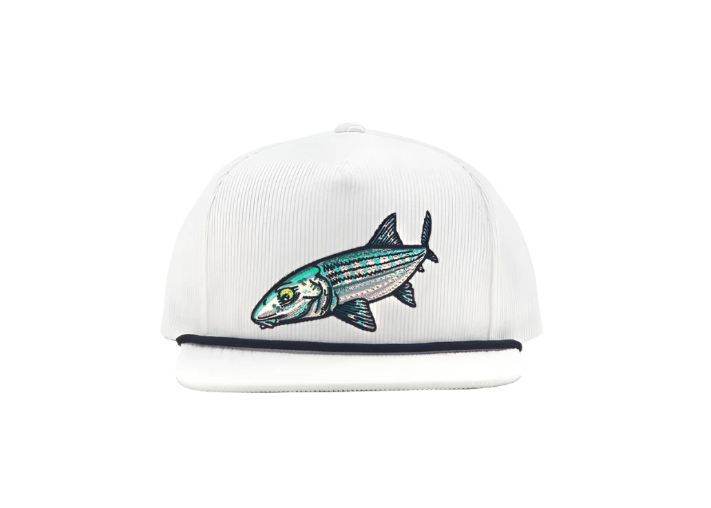 Take a risk and stand out with Bajio’s Bonefish Flat Brim Corduroy hat. Each hat features its own distinctive corduroy material and snap-back flat brim, adorned with accents cords and bold direct embroidery artwork of yellowfin tuna, bonefish, ballyhoo, and an anglerfish. Crafted from scratch in New Smyrna Beach, FL by passionate individuals who take pride in their work and value exceptional quality.